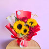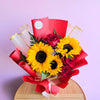 Featuring sunflowers and roses, this handcrafted arrangement embodies sophistication and refined beauty.